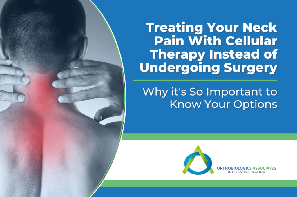 Physical assessment and diagnostic imaging are used in combination to assess the exact cause of the pain and surgery typically follows. The downside to this is that additional weaknesses are created with any structural change in the body. This eventually leads to more and more surgery that increases in severity. Fortunately, there are ways to avoid this! Here at Ortho-biologics Tampa, we are on the cutting-edge of medical technology, offering you new ways to help heal the actual cause of your neck pain and not just cut things off or out.